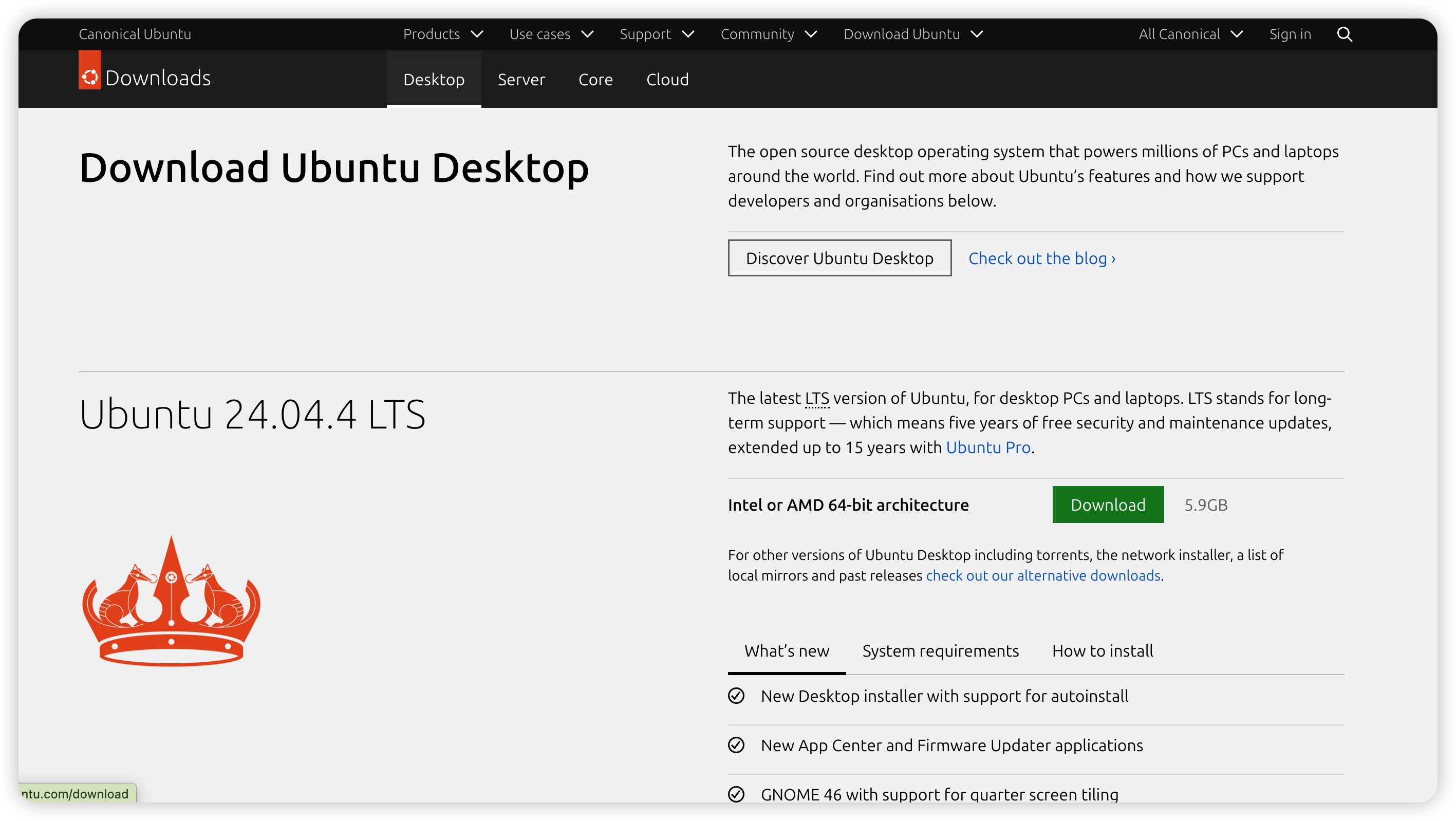 打开 Ubuntu 官网,下载桌面版系统镜像: