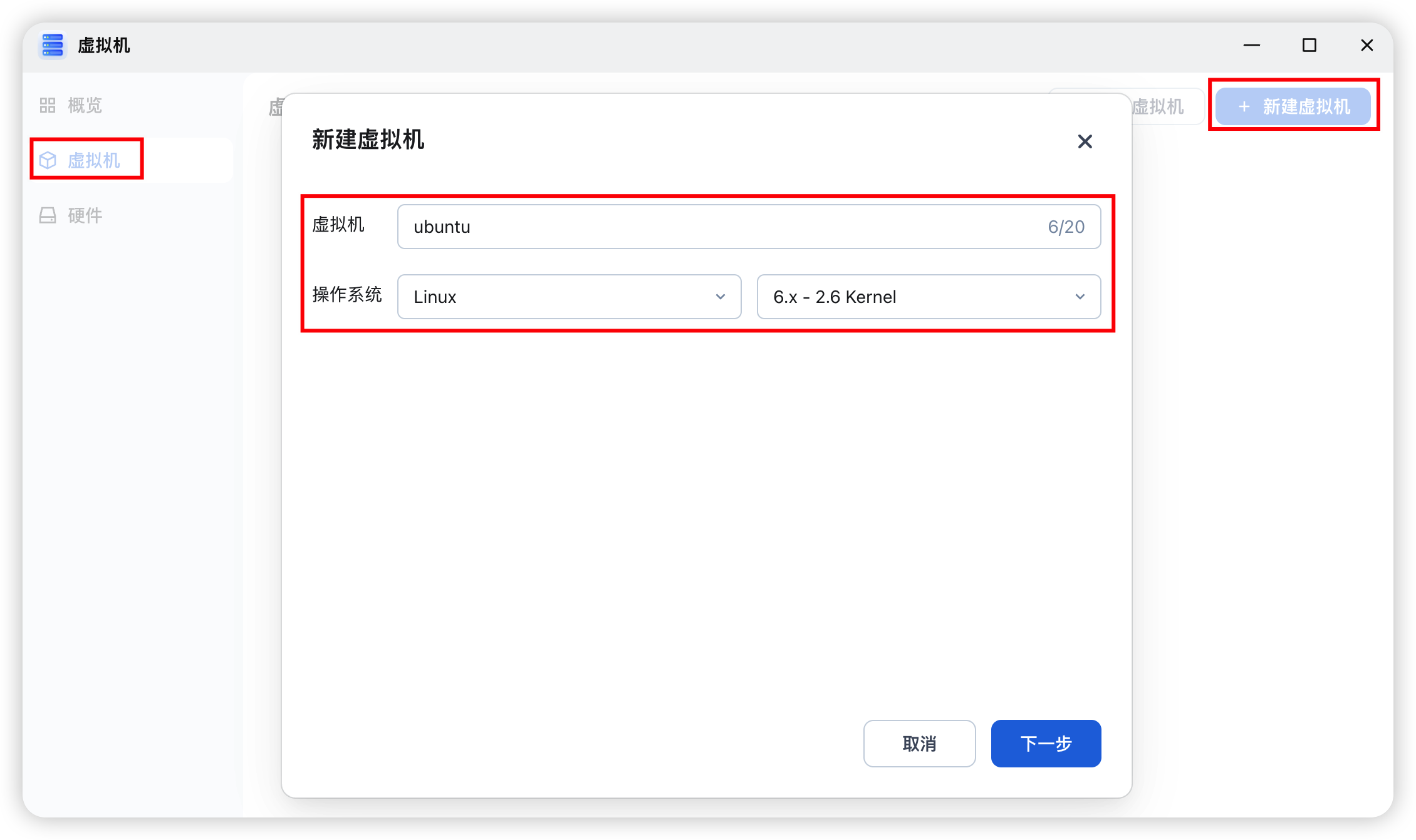 切换到「虚拟机」面板,点击新建虚拟机: