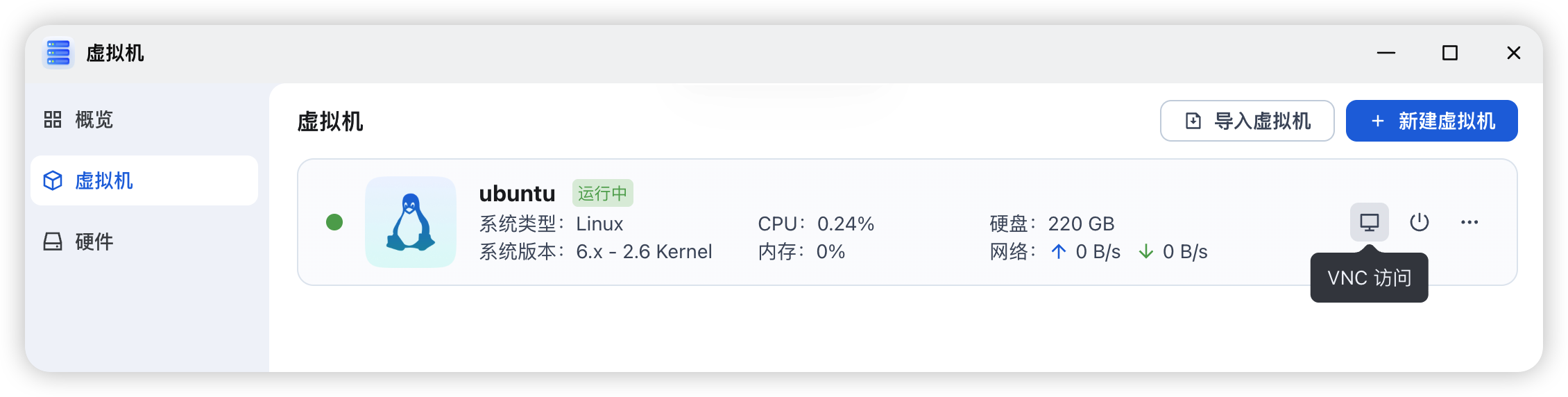 开机后点击 VNC 访问按钮,进入虚拟机控制台。