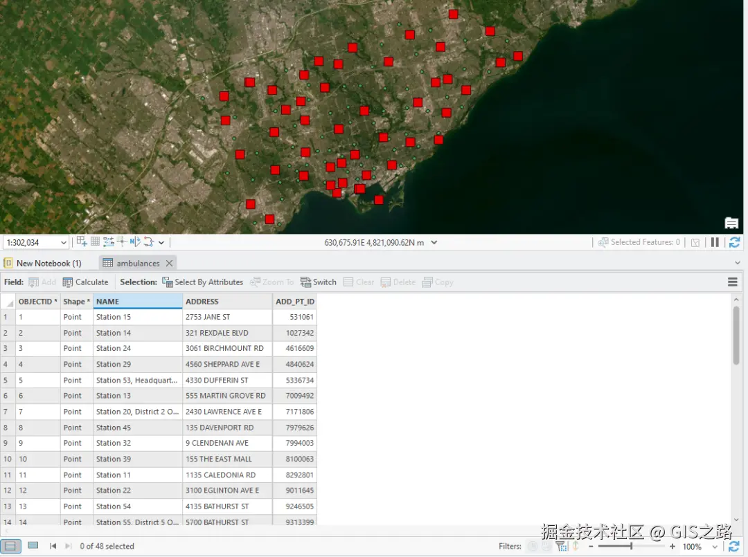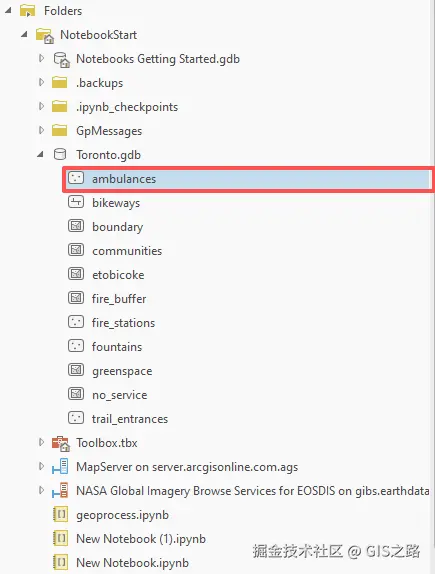 打开工程文件夹,将ambulances要素类添加到当前地图。在