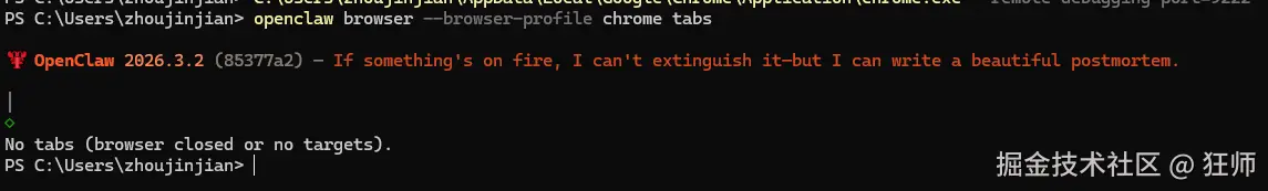 openclaw browser --browser-profile chrome tabs - 智能体工具: