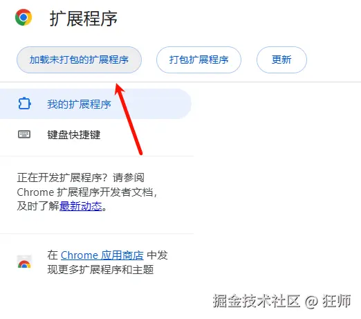 2)在 Chrome 中加载扩展,打开 Chrome → 访问 chrome://extensions