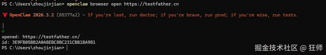 openclaw browser --browser-profile openclaw open https://testfather.cn