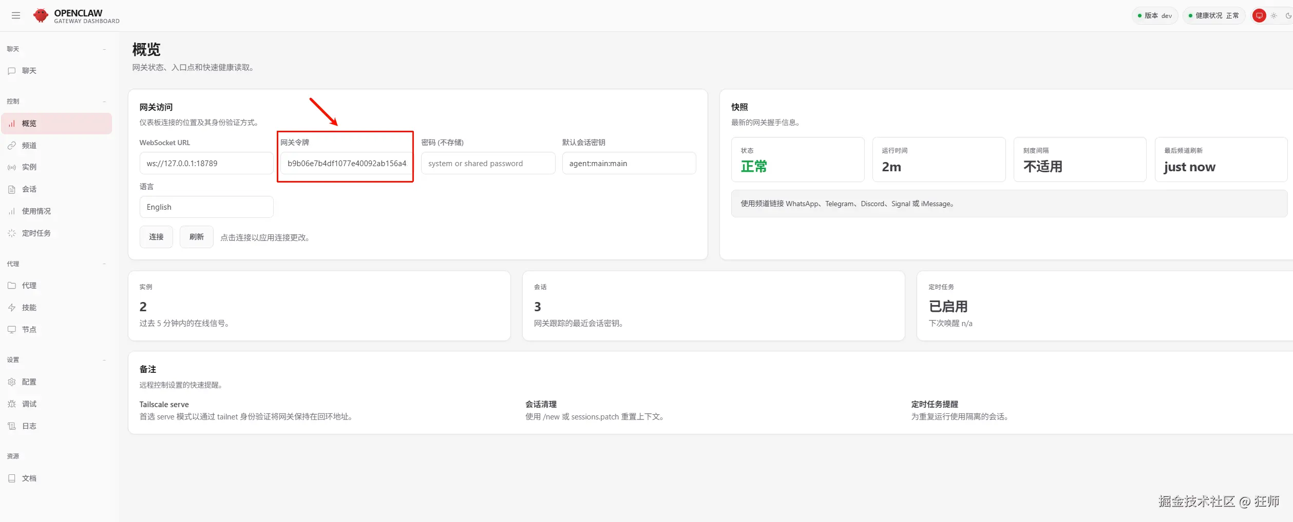 4)访问:http://127.0.0.1:18789/overview,获取网关令牌