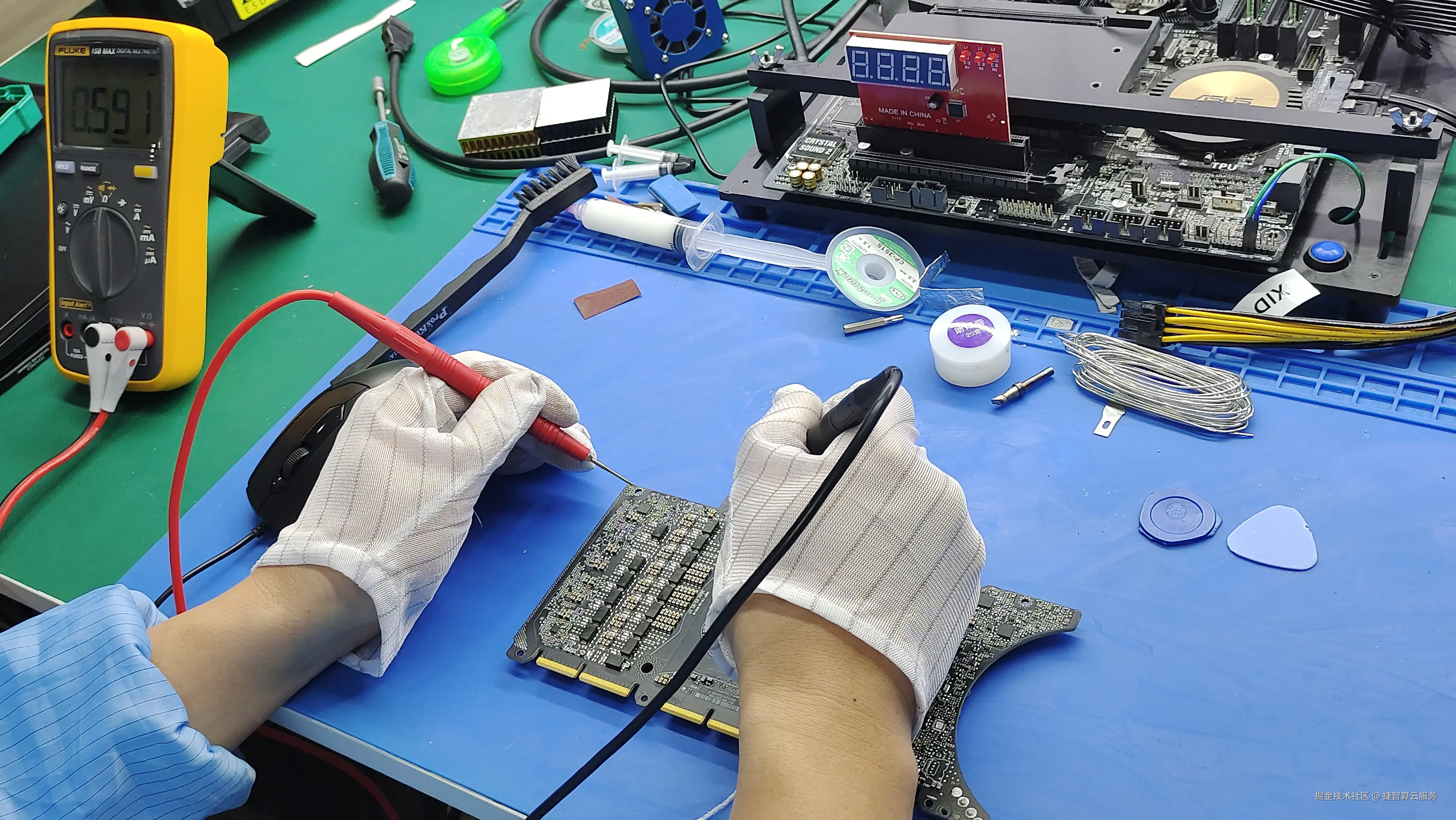 **1.硬件层面:**核心芯片损坏、显存故障、供电电路短路、焊点脱落等,需通过专业检测设备(如示波器、万用表、GPU 专用检测仪)精准定位;