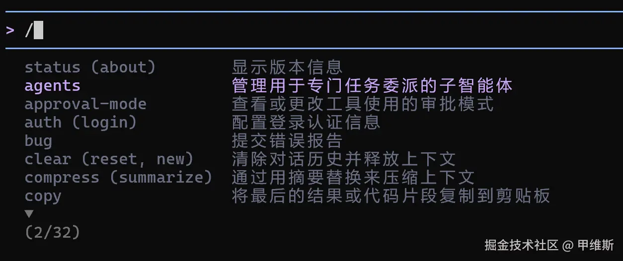 看了一下命令还挺齐全的,里面还有 agents 不知道怎么使用的。
