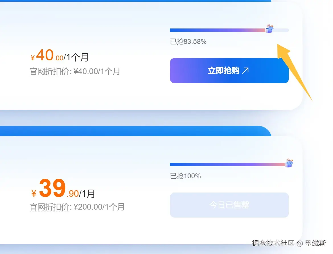 然后进度条变这样了,价格又 40 元了: