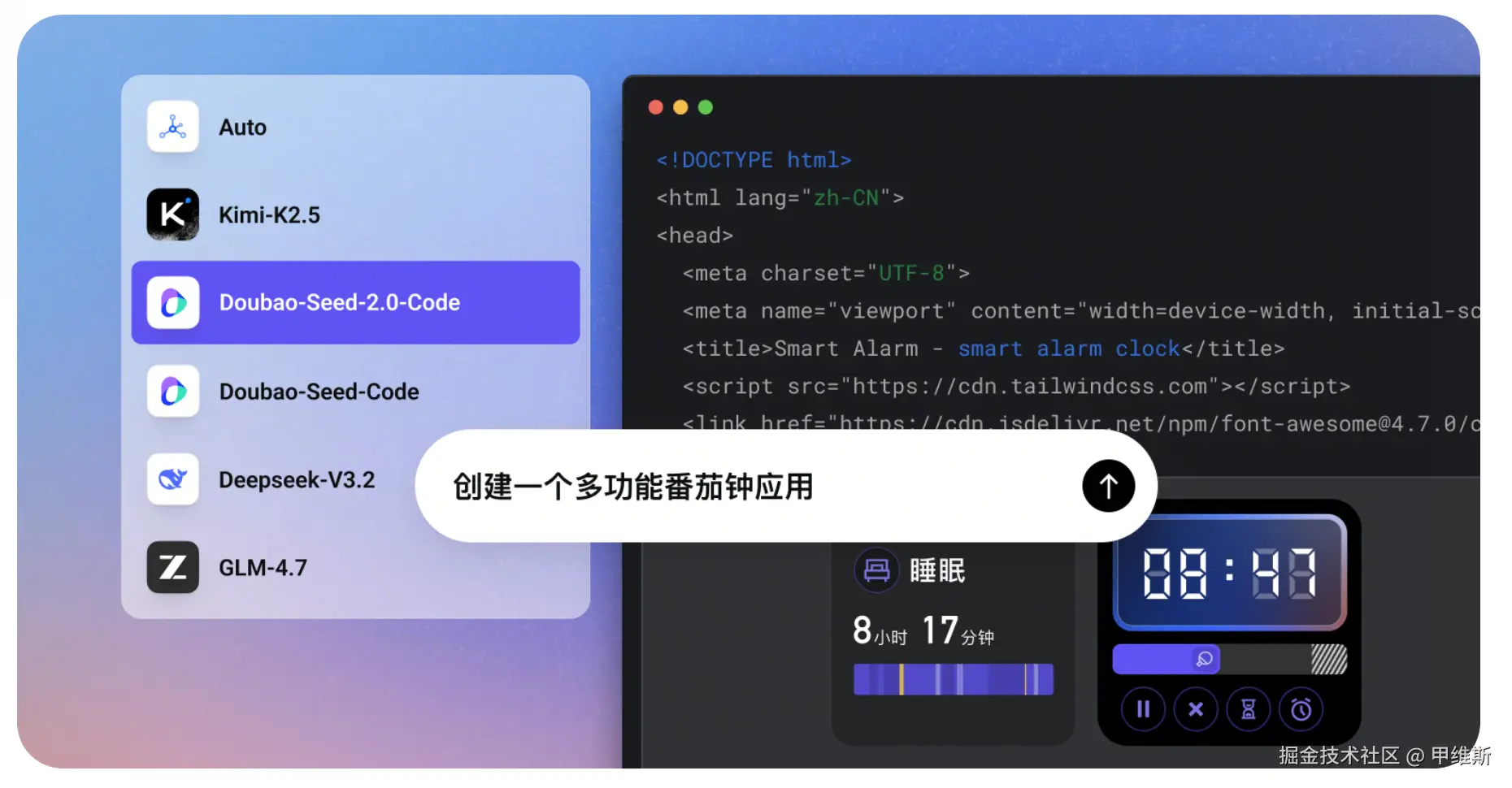 字节的是包含了自家的 DoubaoSeed2.0,以及 kimi-k2.5、deepseekv3.2、GLM4.7 等模型。