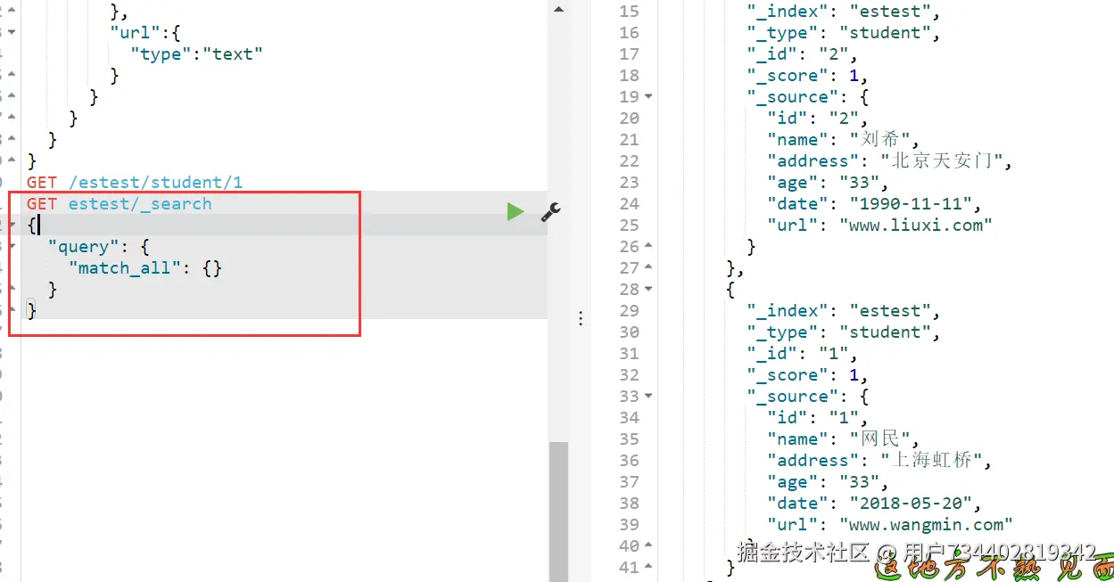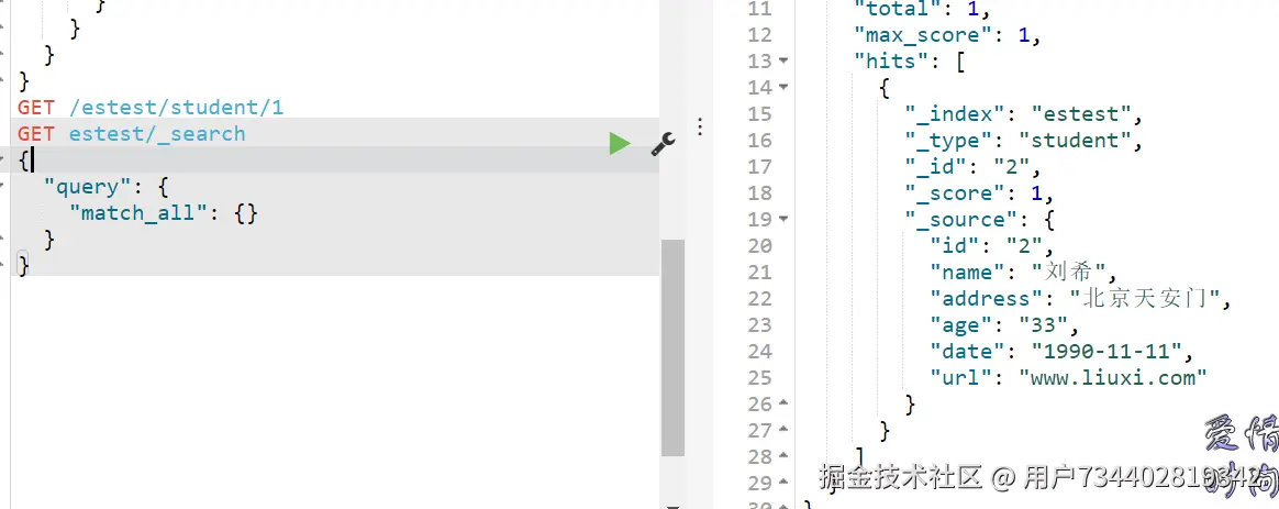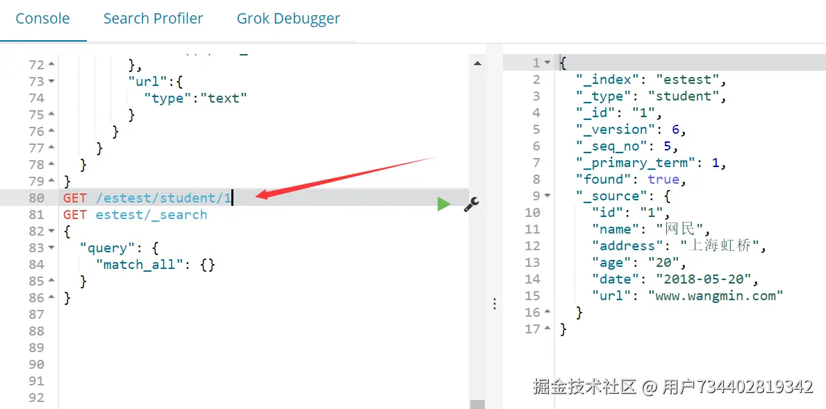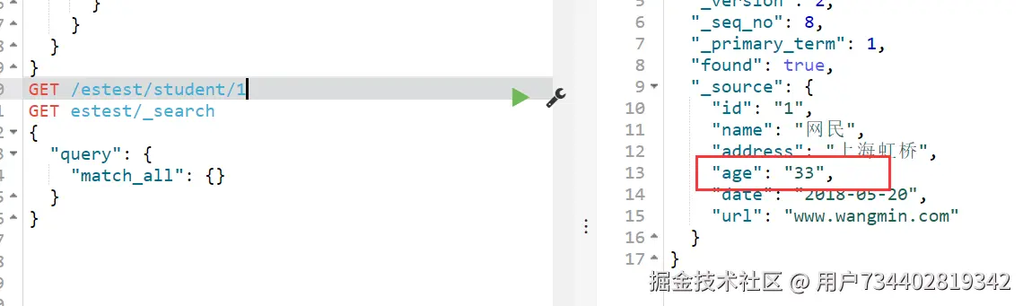 //实现数据查询(指定_id查询) 参数分别是 索引名,类型名 id