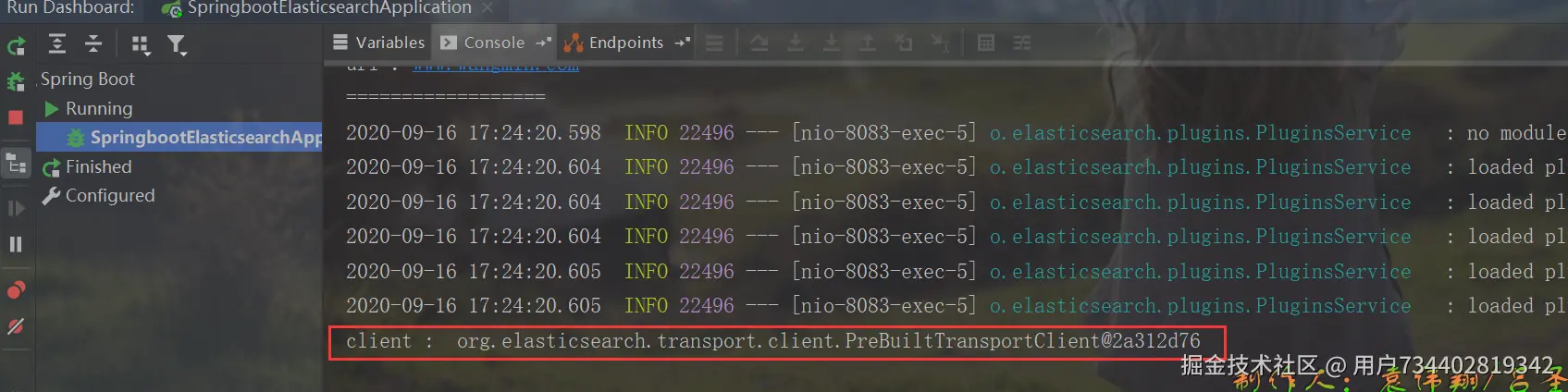 private static int port = 9300;//通过http请求的端口号是9200,通过客户端请求的端口号是9300