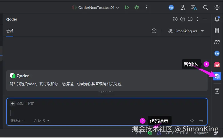 本节,我们只先来看看一下Qoder插件的代码提示的威力!