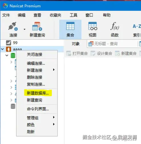 注意观察,数据库的字体是斜体灰色的,如果这个时候关闭软件,这个数据库就会消失。