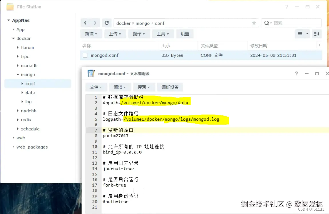 -v /volume1/docker/mongo/conf/mongod.conf:/etc/mongod.conf \