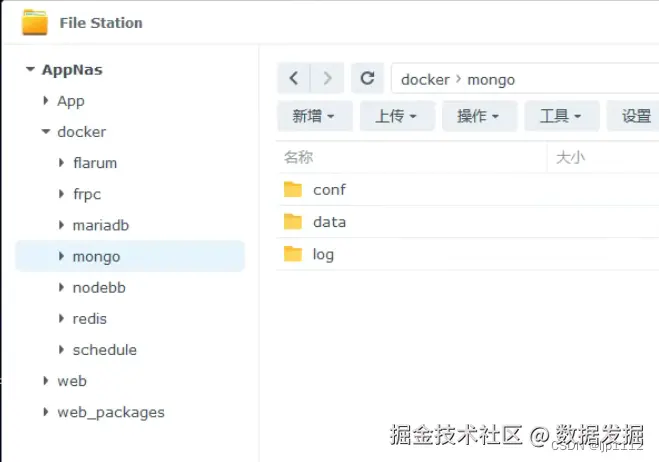 1。先建立3个文件夹,映射mongo容器里的文件。