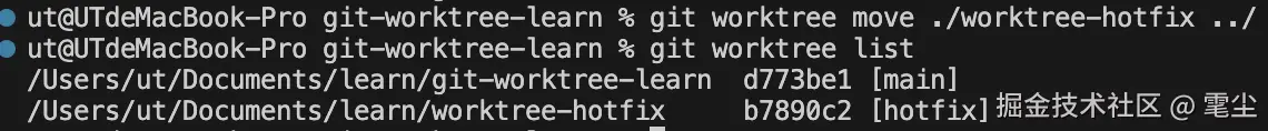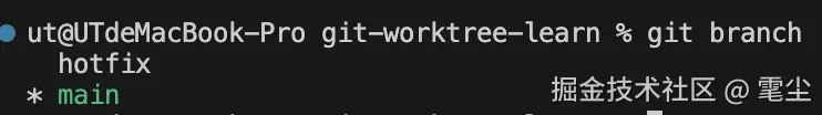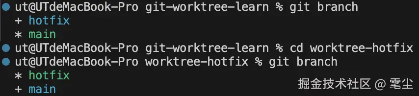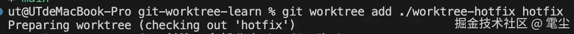 如果没有 hotfix 分支,想在当前分支拉出一条新分支就加上 -b参数,即:git worktree add ./worktree-hotfix -b hotfix