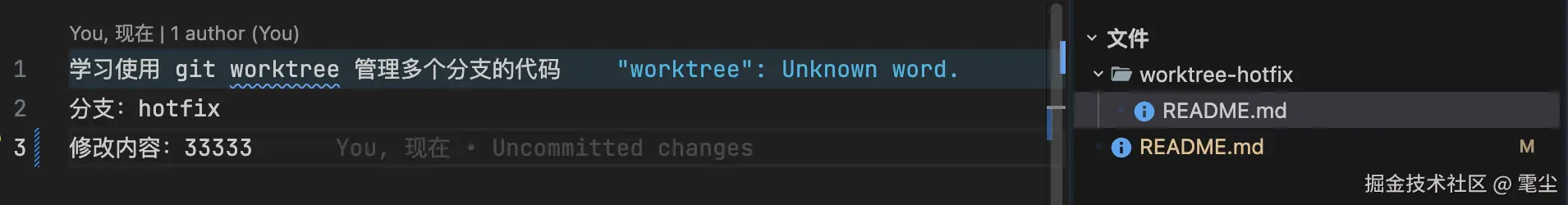 main分支,而./worktree-hotfix代表的是hotfix分支。 - 简单理解:切目录就等于切分支。