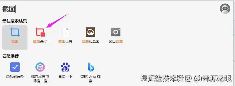 我们需要呼起搜索框,然后搜索自己的取色工具即可。界面会自动展示常用的工具。