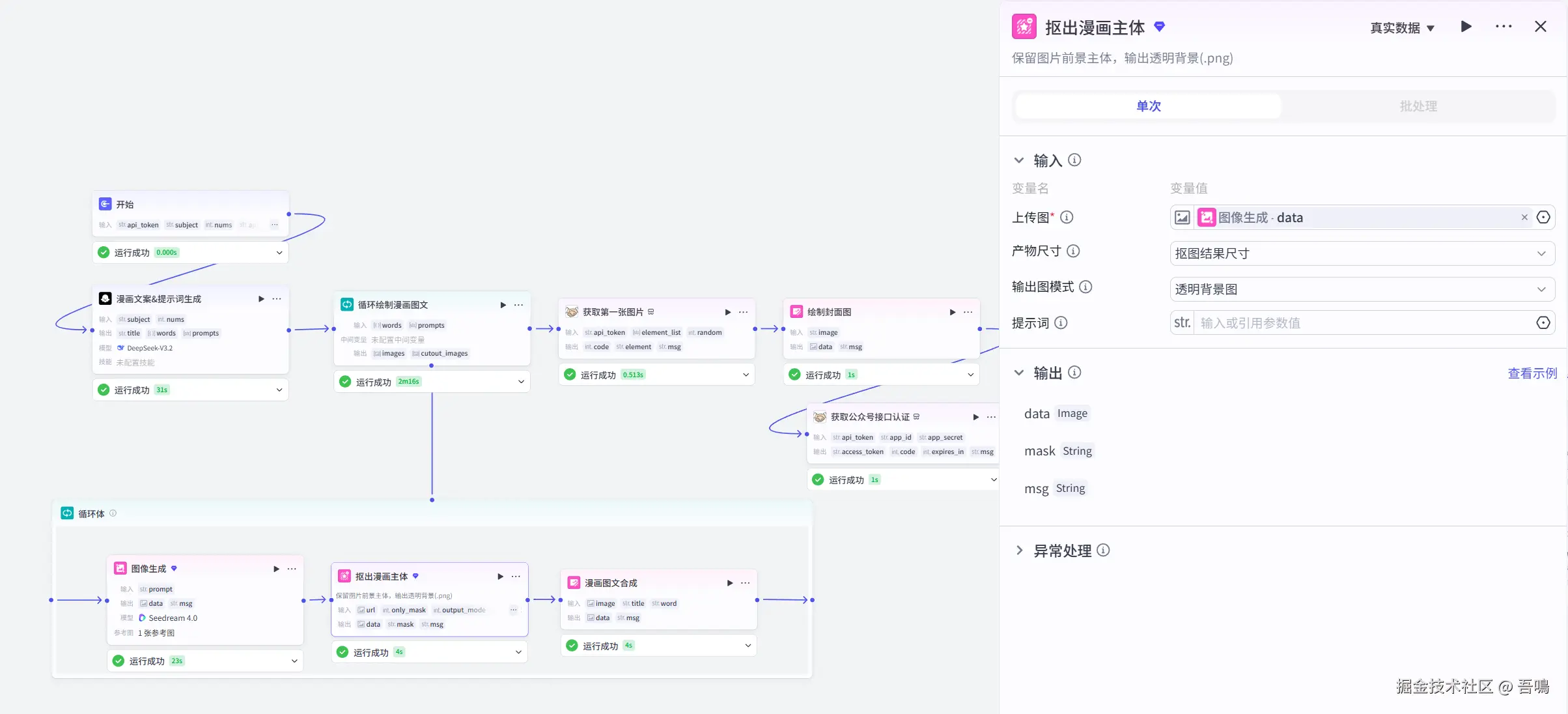 这个节点使用到了扣子官方的抠图节点,用来扣取漫画主体。