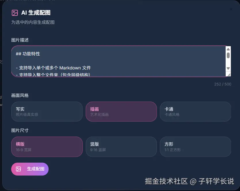 4.甚至连文章配图都不用你到处找,输入要求AI就能一键生成符合主题的配图,直接插到正文里,从写稿到排版到配图全程不用换工具。