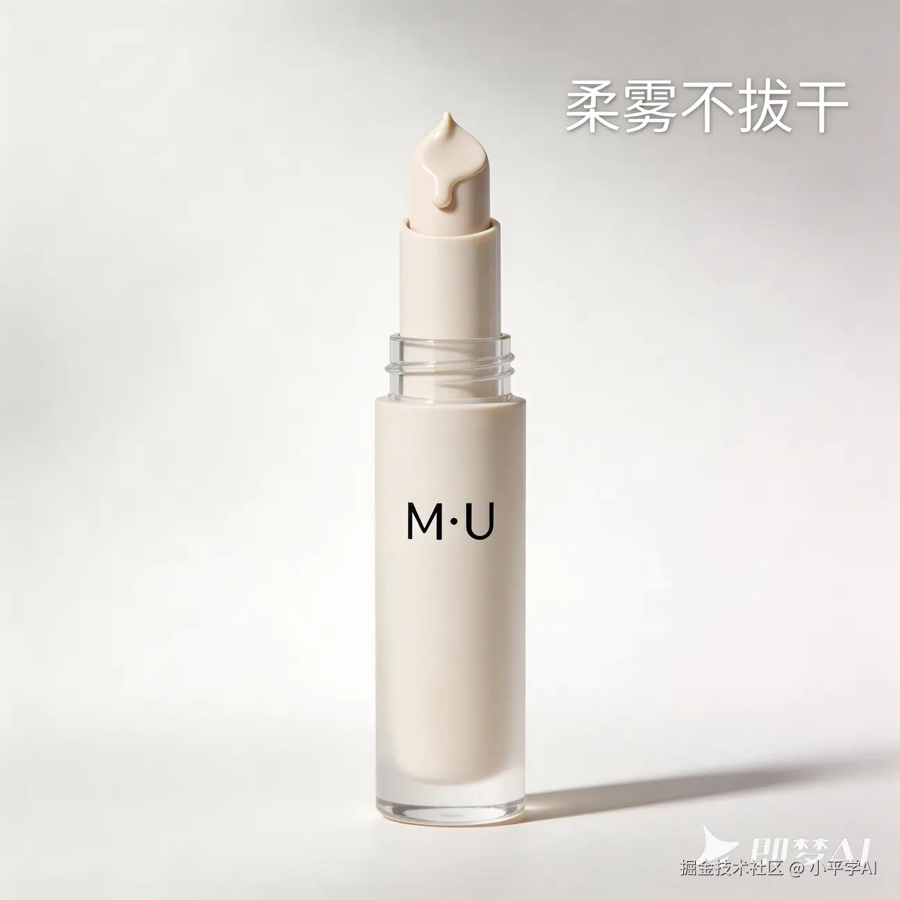 2.【输入提示词】:电商正方形主图,超写实美妆产品摄影,