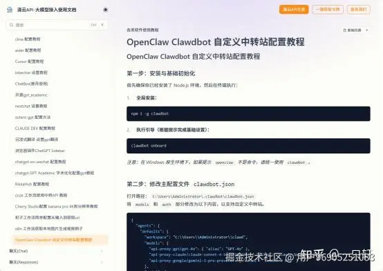 OpenClaw Clawdbot 自定义中转站配置教程:OpenClaw Clawdbot 自定义中转站配置教程 - 清云API-大模型接入使用文档