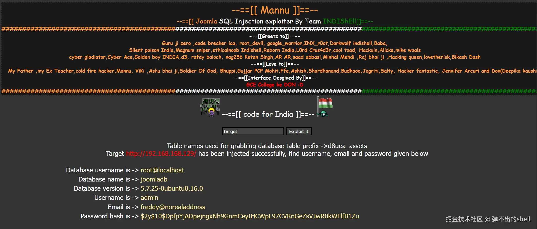 输入目标 IP 执行攻击,获取到数据库信息: