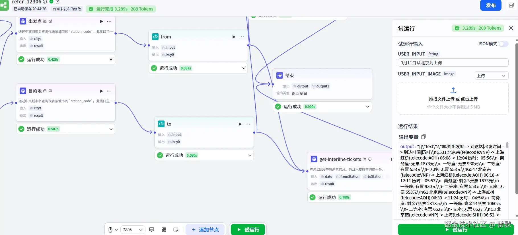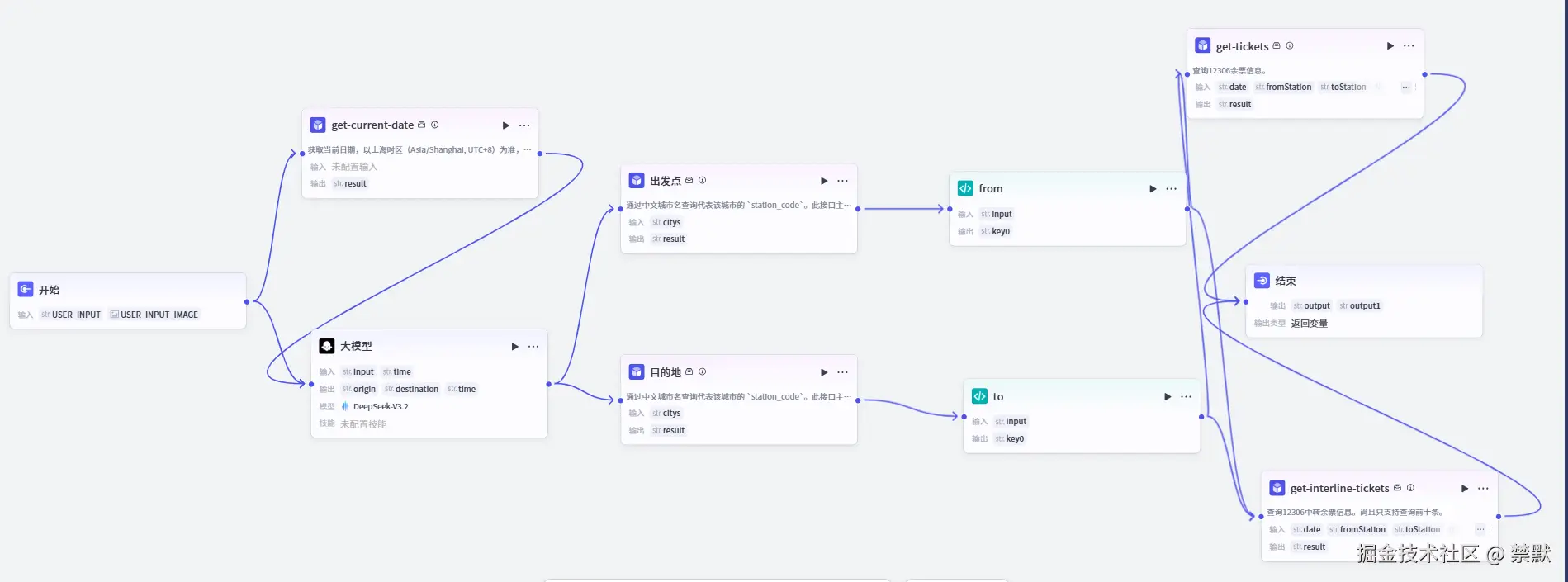 get-interline-tickets获取车票中转信息。 - 结果格式化节点:按统一规范将结构化数据转为自然语言;