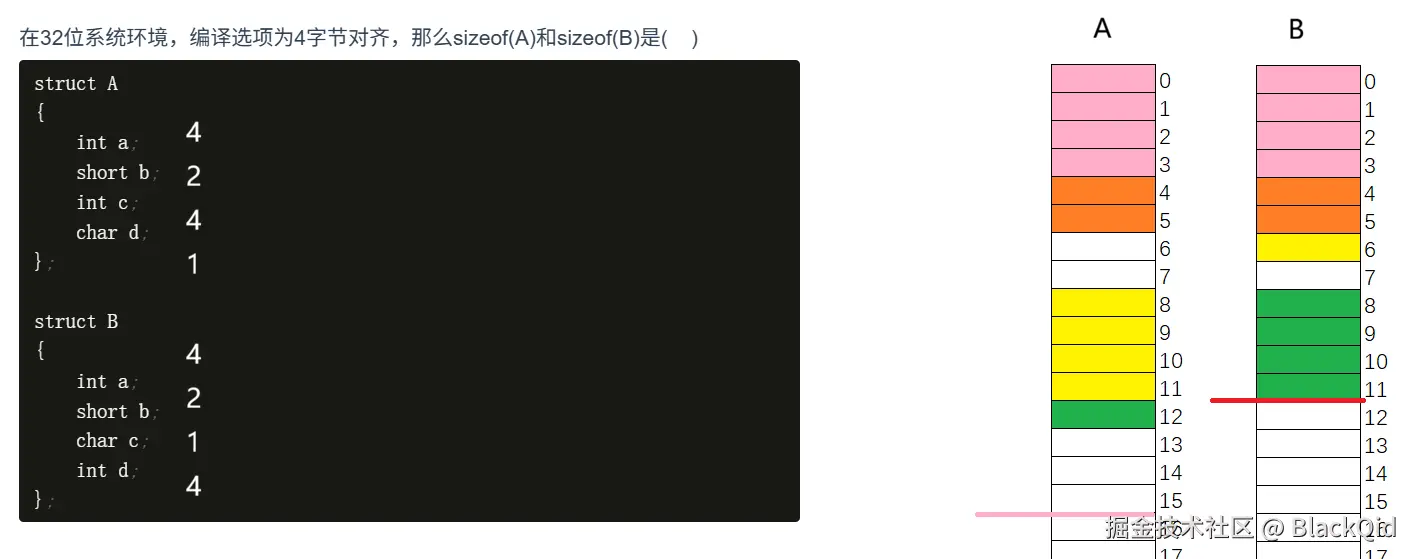 - 如果嵌套了结构体的情况,嵌套的结构体成员对齐到自己的成员中最大对齐数的整数倍处,结构体的整体大小就是所有最大对齐数(含嵌套结构体中成员的对齐数)的整数倍。