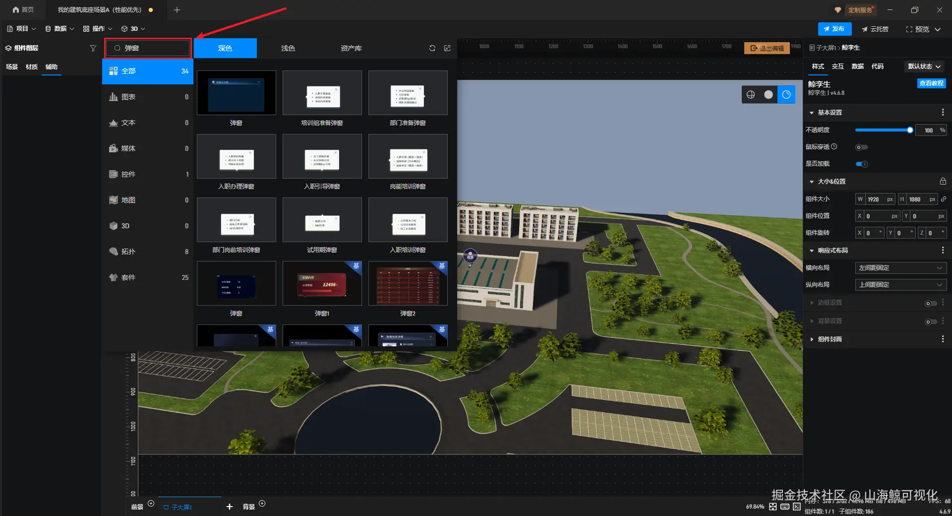 我们也可以在左上方搜索 “弹窗” ,选择更多种类的弹窗样式。