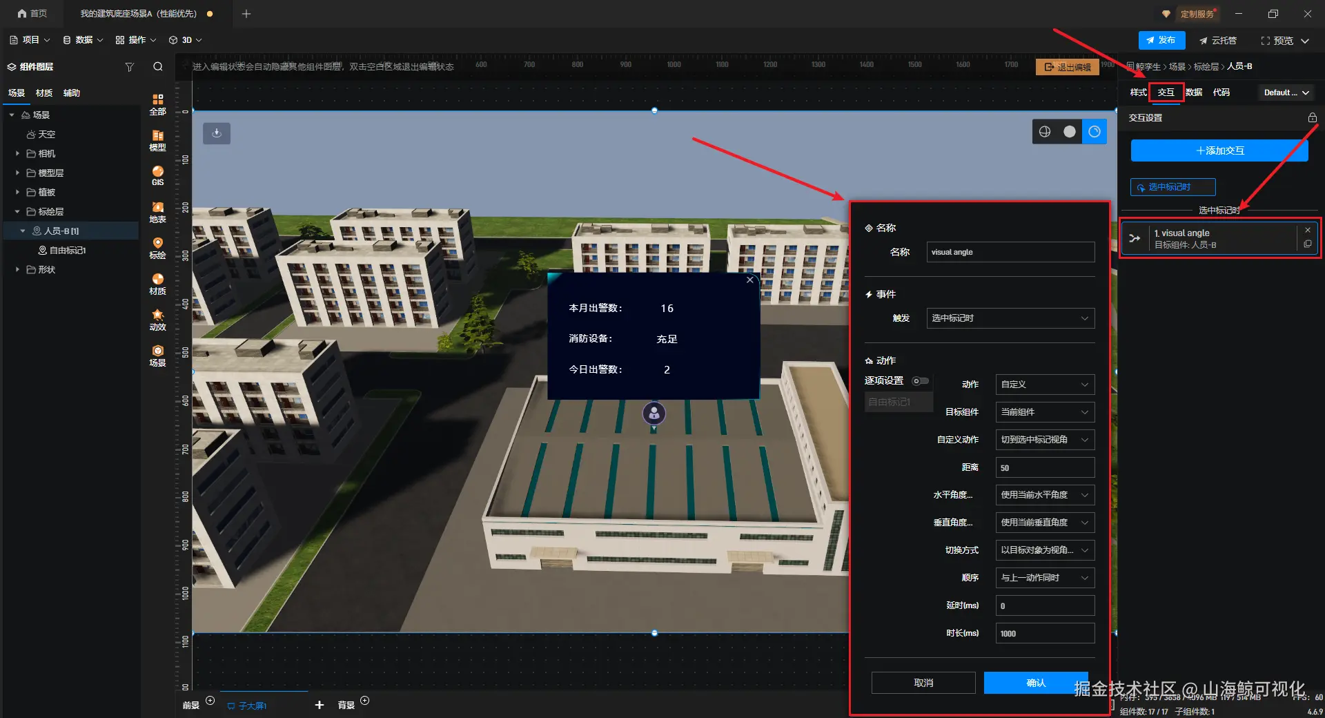 添加的部分标记点会自带点击后切换视角的交互设置,我们可以手动进行删除或修改。