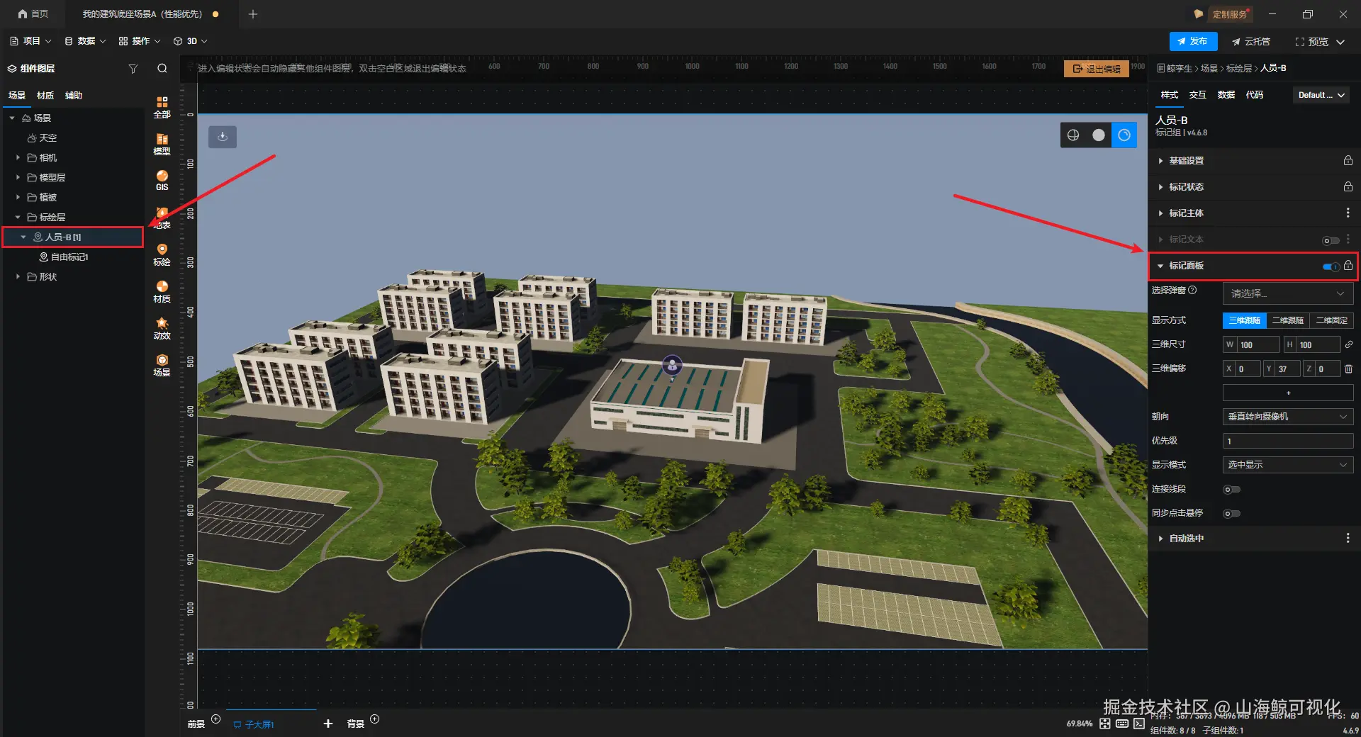 添加标记点后,在左侧图层列表中选择标记组图层,然后在右侧 “样式” 设置中打开 “标记面板” 。