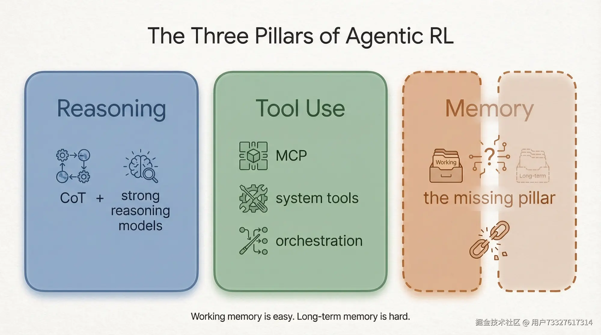 推理和工具使用都有了清晰的技术路径和成功的商业产品。但记忆——这个最终决定用户体验的能力——仍然是硬骨头。