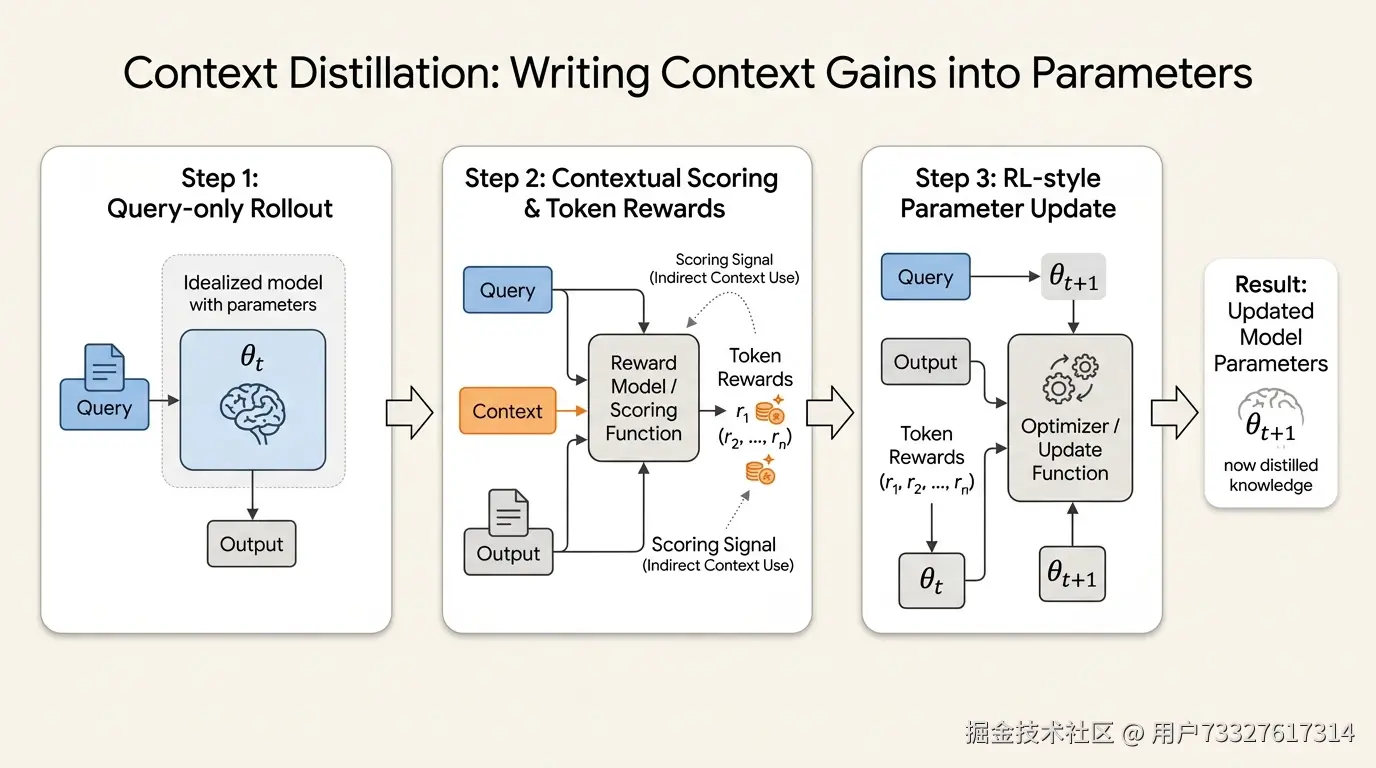 核心思想用一句话概括:如果Context Engineering能让模型在测试时变好,能不能把这种增益系统性地编码进模型参数,让它即使没有外部上下文也能保持这种能力?