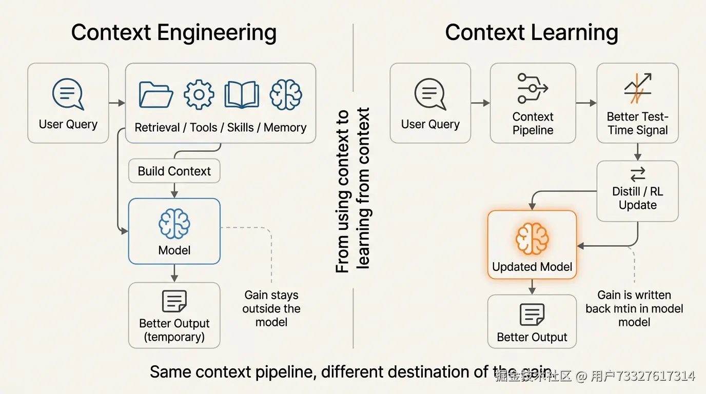 简单说就是:别只是给模型「用」好的上下文了,要让模型「学会」上下文,把临时的增益变成永久的能力。
