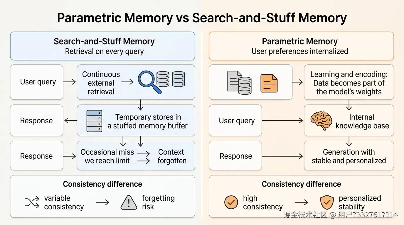 Mind Lab认为,真正的长期记忆必须是参数化的。LLM本身就是终极的参数化记忆引擎——它完美记住了世界的通用知识,但偏偏记不住「我」,也维护不好「我的产品」的稳定特征。
