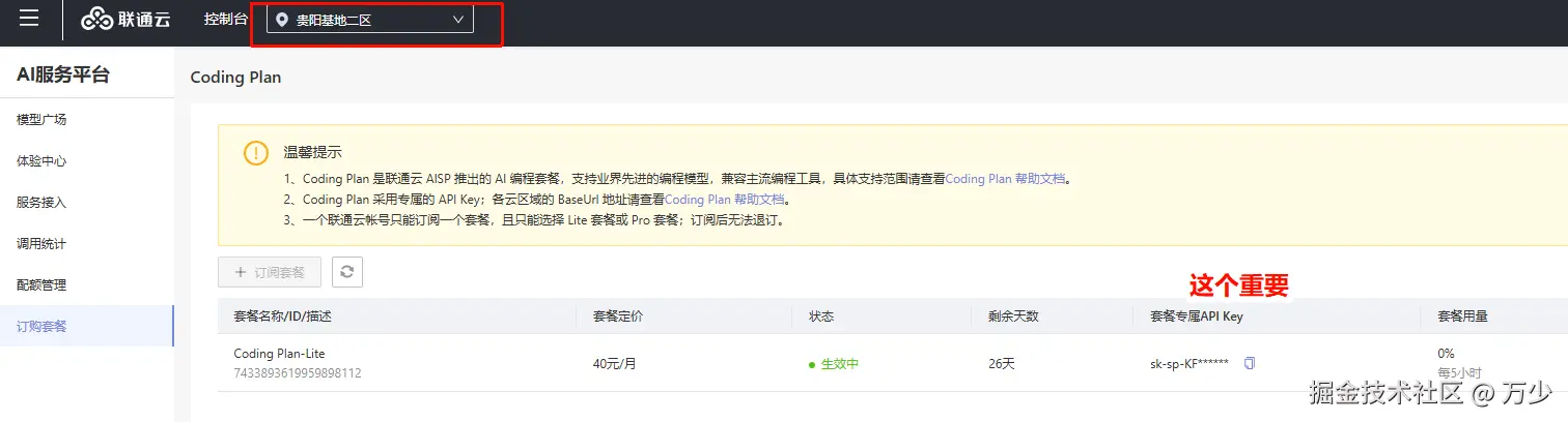 2. 联通云上的baseUrl是: "https://aigw-gzgy2.cucloud.cn:8443/v1", apiKey是:xxxxxxxx