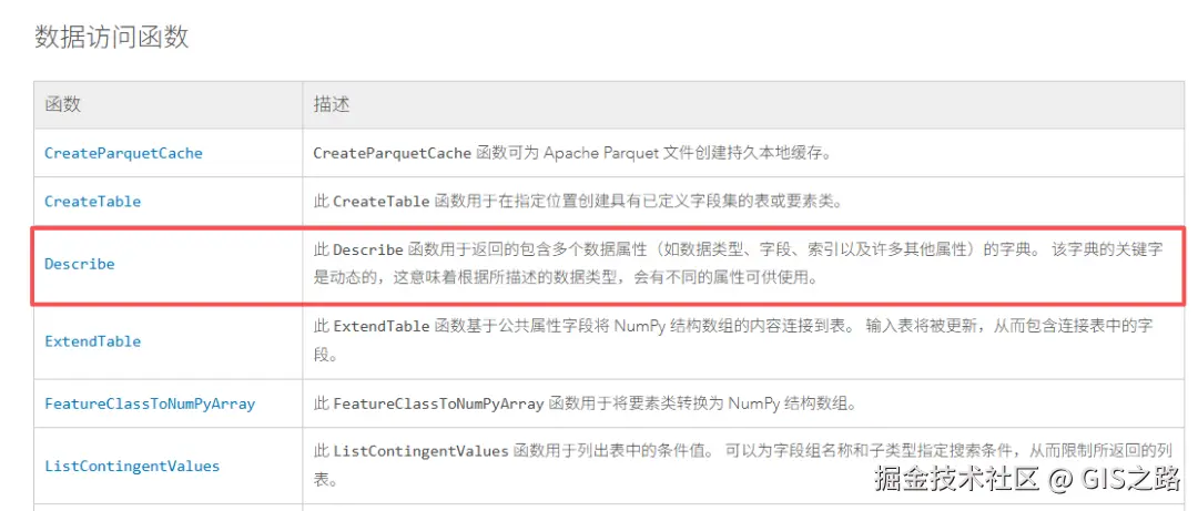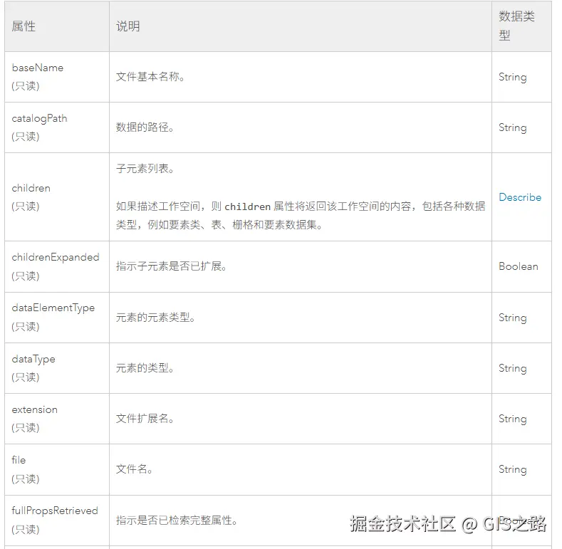 https://learn.arcgis.com/zh-cn/projects/list-and-describe-datasets-with-python - Describe函数参考地址: