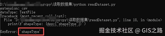 可以通过执行检查来防止此错误。在打印shapeType属性前,添加一行代码,判断字典中是否存在shapeType键名。