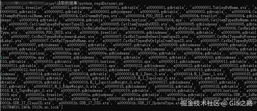 由于空文件扩展名对于地理数据库元素很常见,因此可以使用 if 语句判断存在文件拓展名时才打印该属性。将打印语句修改如下。