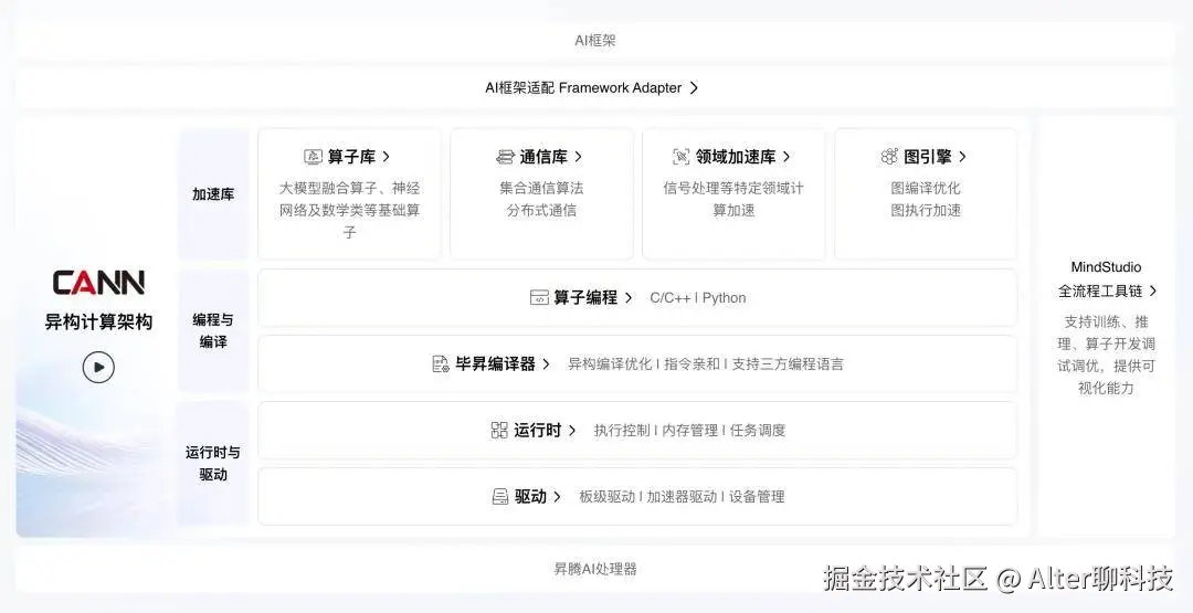有别于CUDA的封闭,CANN将算子库、通信库、图引擎、编程语言、运行时等核心组件进行全量、分层解耦的开源。企业和高校的科研团队可以深入到图优化、算子融合、内存调度等底层机制进行二次创新,甚至不用局限于现成的工具和框架,可以根据自身需求进行深度定制和优化,实现更高的性能和效率。