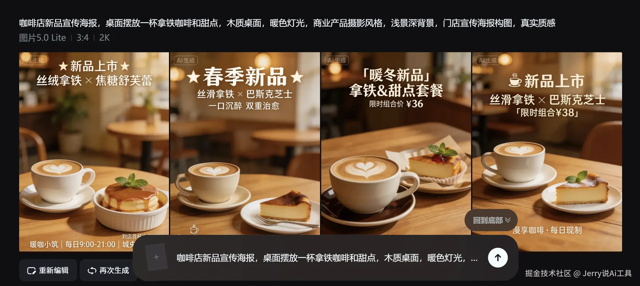 咖啡店新品海报、花店节日活动图、餐饮店门店促销图——这些过去要找设计师、反复改稿的工作,现在我测试下来:从生成到能用,大概只要3分钟。