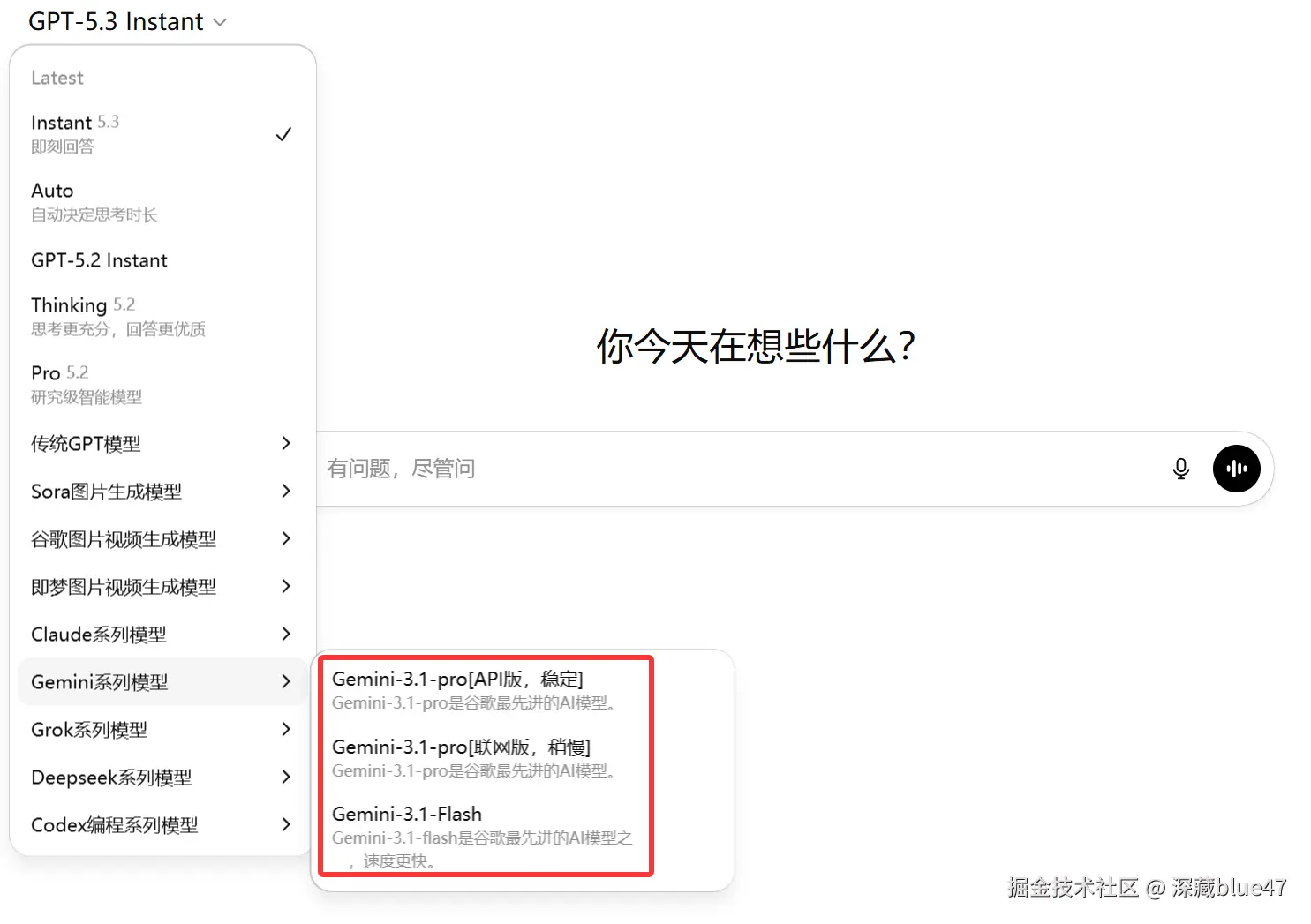 由于网络和地区的限制,很多用户在搜索“国内怎么用 Gemini 3.1”。目前,可以通过聚合类 AI 平台进行访问体验。