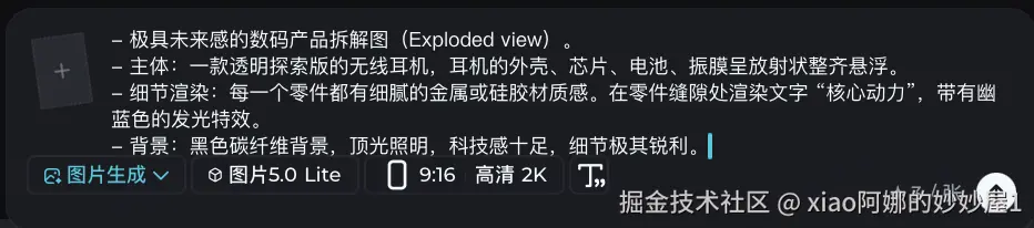 即梦Seedream 5.0生图模型的逻辑推理能力太可怕了,它知道耳机的内部应该有哪些层级,零件的排布非常有秩序感。这张图直接拉高了整个 SKU 的专业度。