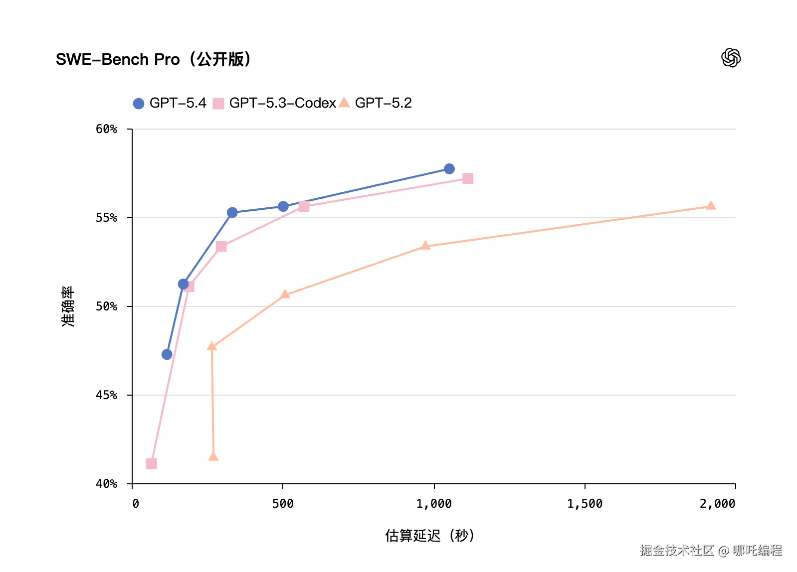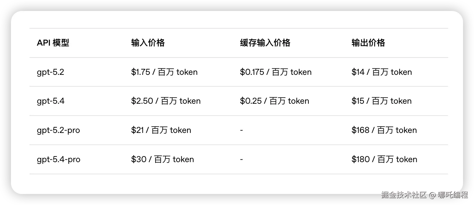 虽然能力变强了,但在API价格上,GPT-5.4相比GPT-5.2有所上涨,反映了其更高的计算成本和价值。