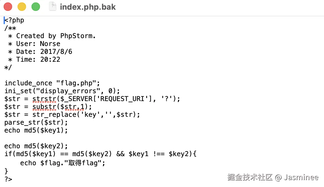 if(md5($key1) == md5($key2) && $key1 !== $key2){ // 核心判断:MD5值弱比较相等,但两个变量本身强比较不相等