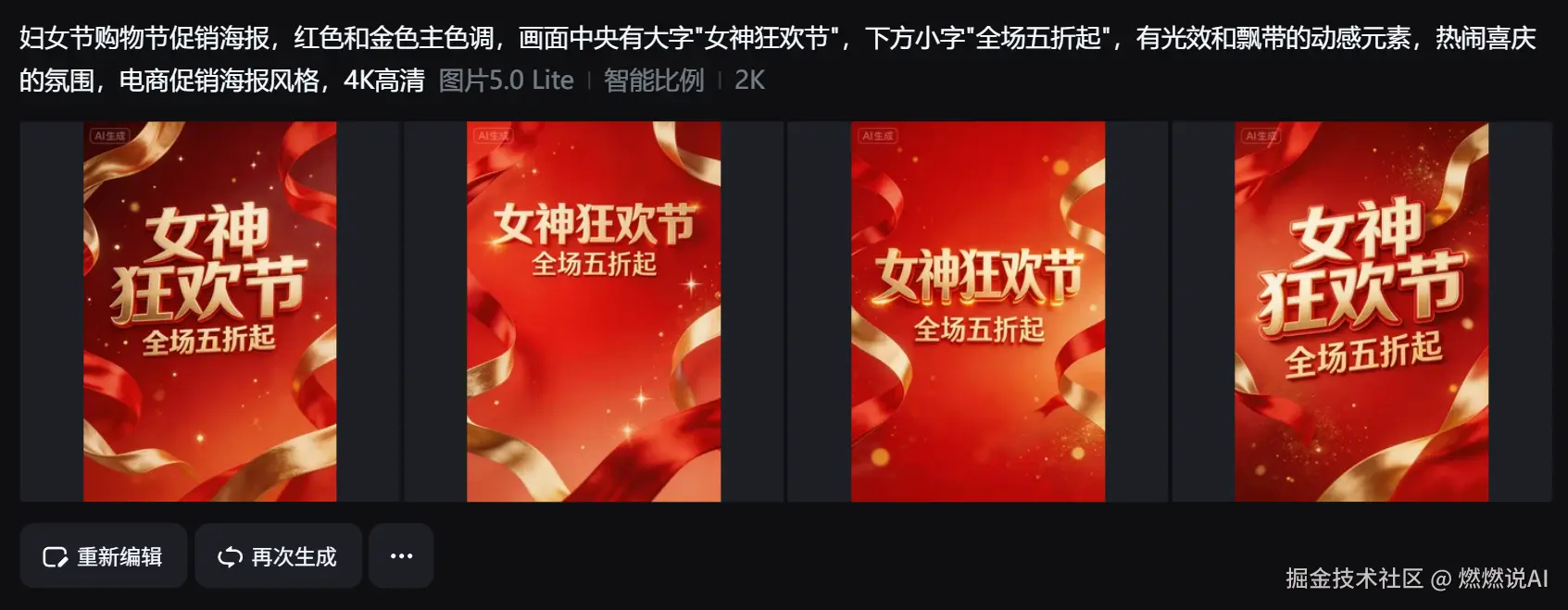 这个太实用了。一次生成9张,总有能用的。不像有的工具一次就一张,不满意还得重来。Seedream 5.0 Lite抽卡成功率高,效果稳定可控,大促期间批量做图也不怕。