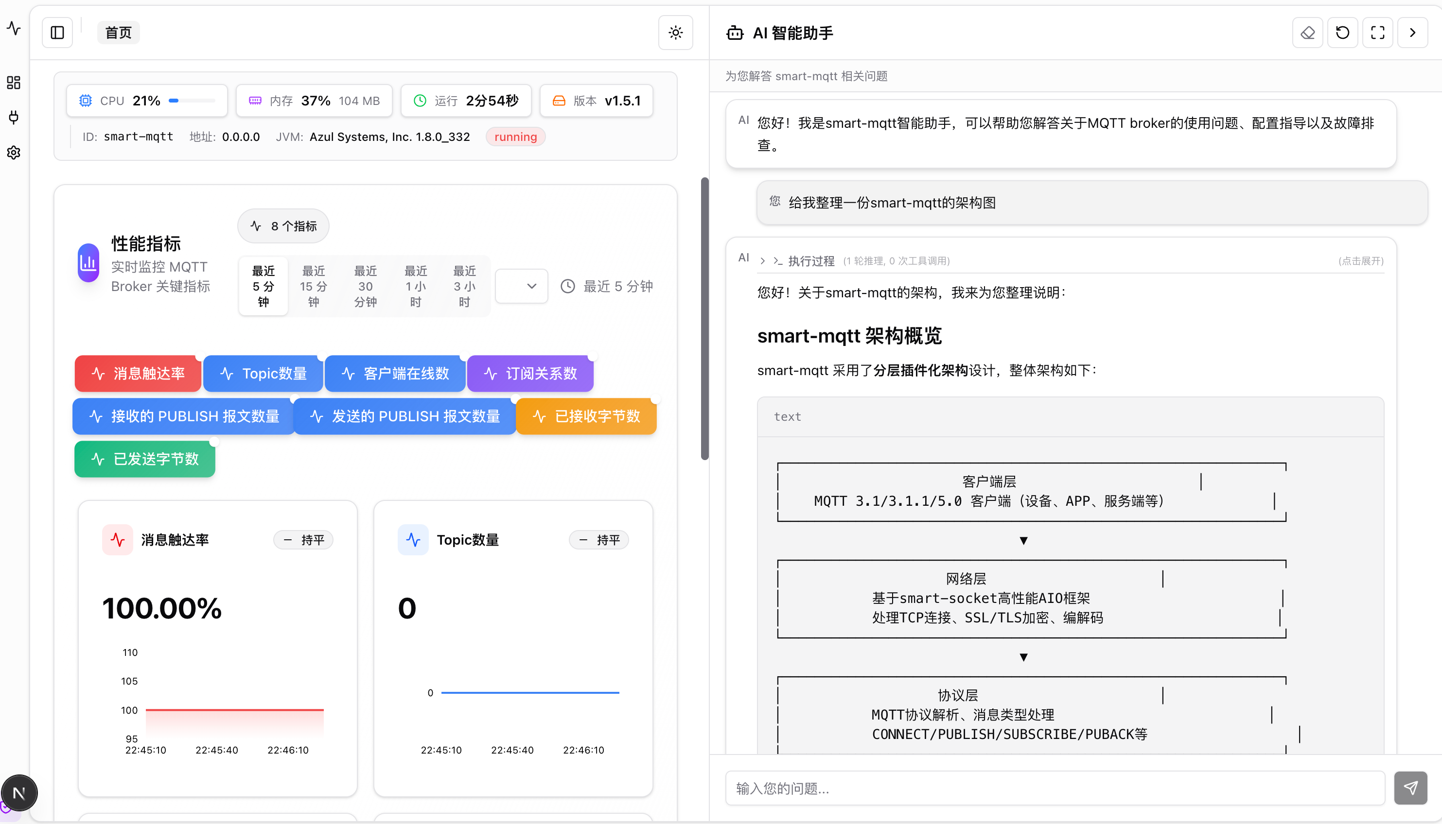 本次版本为 smart-mqtt 企业版集成了智能助手能力。
