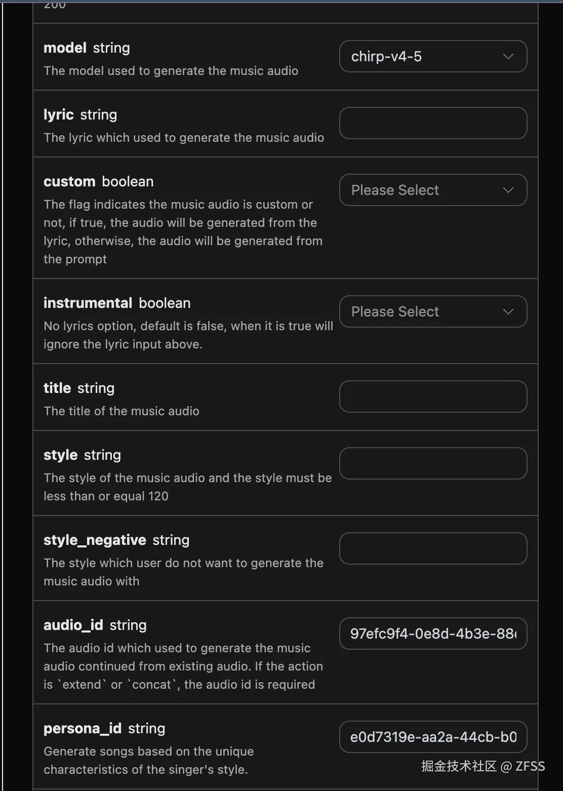 - style:歌曲的风格,选填。