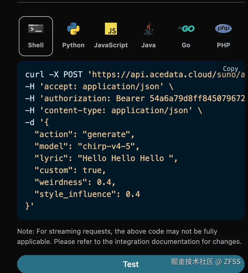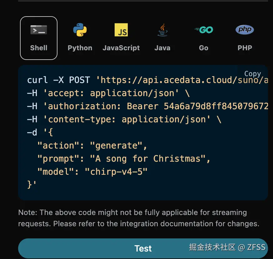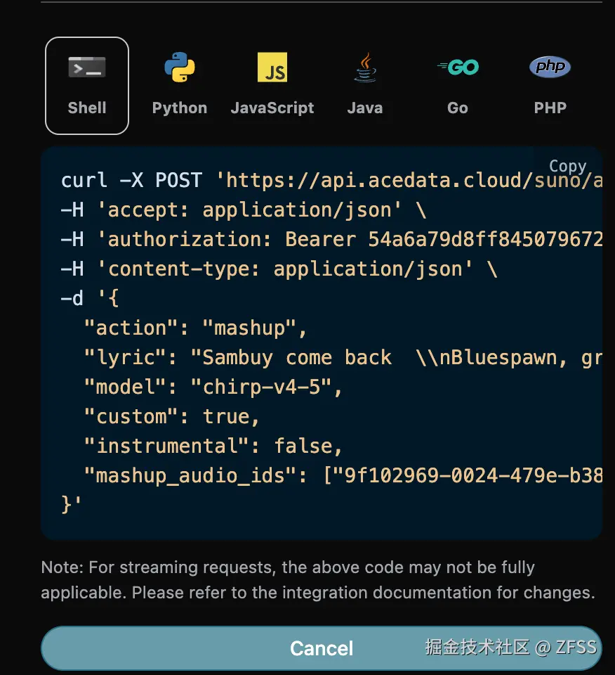 然而 Suno 官方是并没有提供 API 的,AceDataCloud 提供了一套 Suno 的 API,模拟对接了 Suno 官方,可以方便快捷地生成想要的音乐。